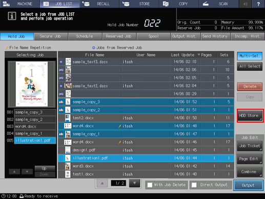 The machine stores the job selected in step 3 onto the directory specified in step 5 of the HDD.