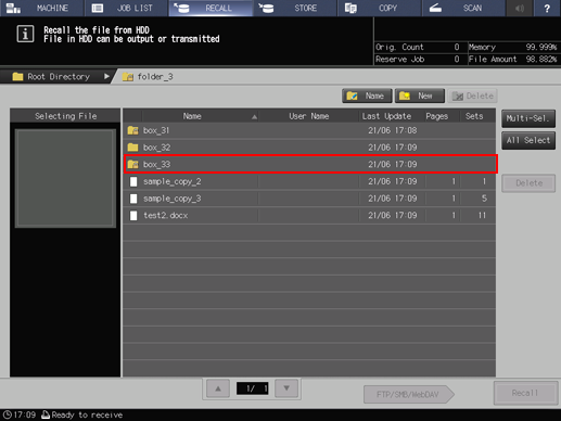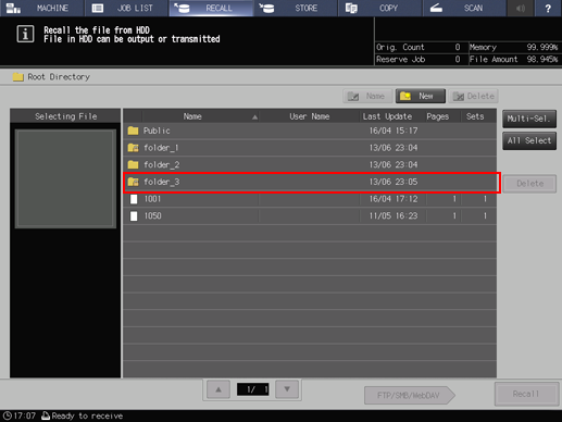 • A maximum of 100 jobs can be saved and a maximum of 1,000 folders can be created in the root directory.
