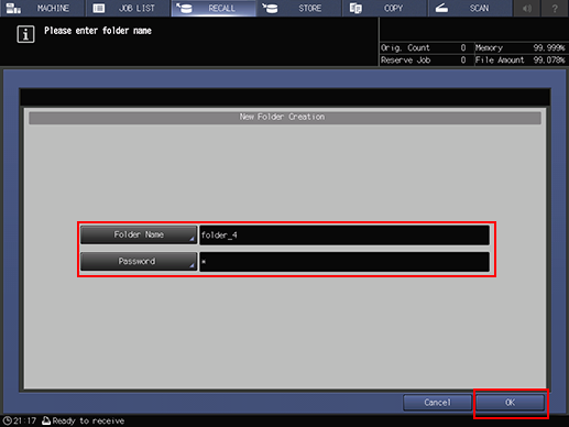 3. Enter a folder name and any password, then press [OK].