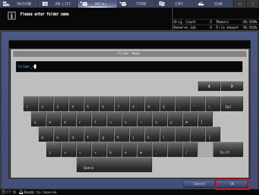 4. Enter a new folder name, then press [OK].