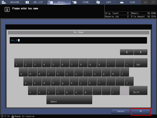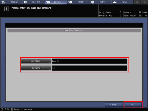 4. Enter a box name and a password (dispensable), then press [OK].
