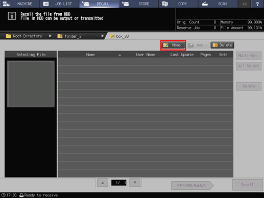Follow the procedure below to create, change name, or delete the folder or box to store hold job on the HDD.