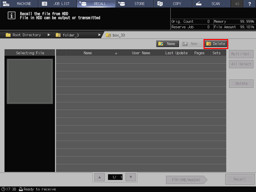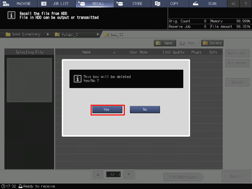 3. Delete all boxes and jobs in the folder, then press [Delete].