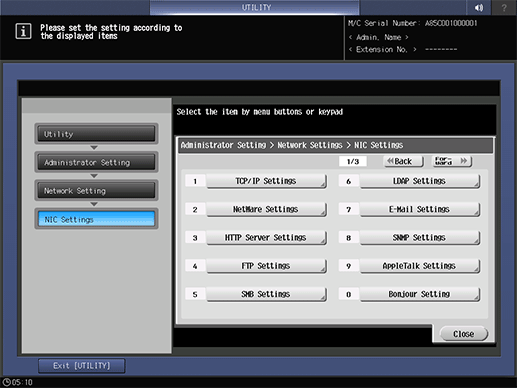 For details about TCP/IP settings and IPP settings of this machine, refer to NIC Setting: Setting the Machine Network Information.