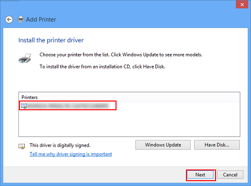 The [Install the printer driver] page appears.