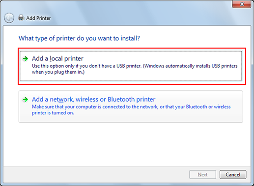 In Windows 7/Server 2008 R2, you cannot install the printer driver by the following procedures.