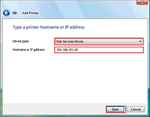 To use Web service print in Windows/Server, install the printer driver before making it known to the computer with plug and play.