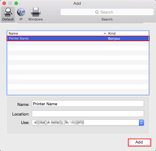 From the [Printer Name] list, select the desired Bonjour-connected model name.