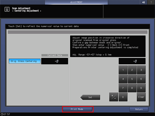 2. Press [Machine Adjustment], [Scan Adjustment], and [Centering Adjustment] in sequence.