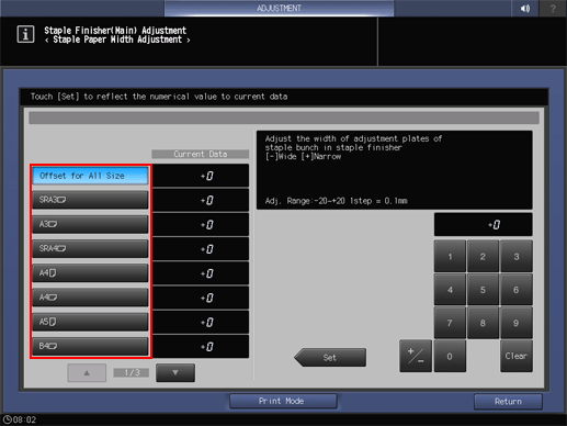 Press [Exit PrintMode] to return to the [Staple Paper Width Adj.] screen.