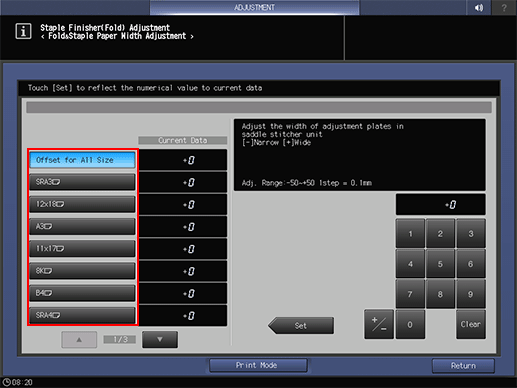 Press [Exit PrintMode] to return to the [Fold&Staple Paper Width Adjustment] screen.