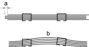 Check if the set of paper shows misalignment (a), or is curved (b).