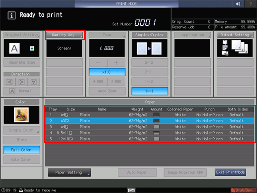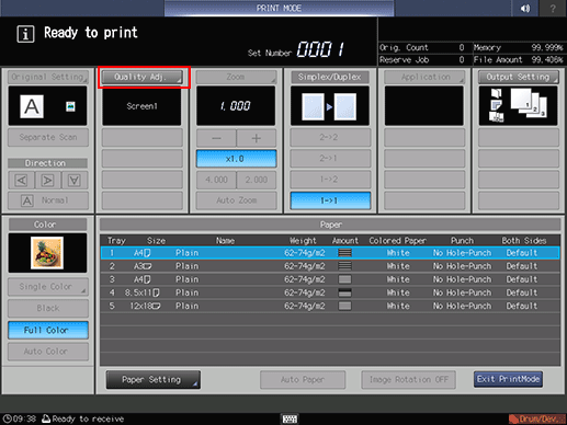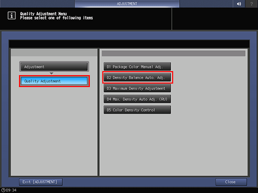 Press [Quality Adjustment] and [Density Balance Auto Adj.] in sequence.