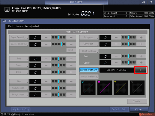 If necessary, you can press [Screen Pattern] to display the [Screen Pattern] screen and select any screen. Select a screen, and press [OK].