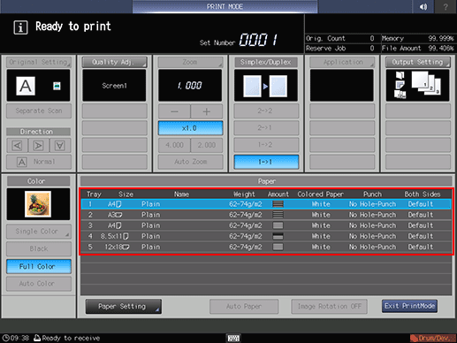 (1) Adjustment value of same screen, same paper type, same weight, and old date