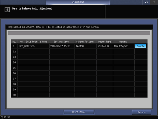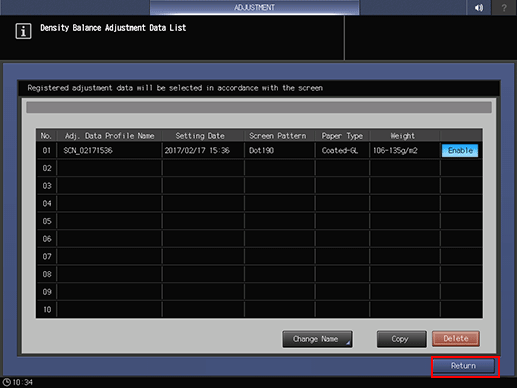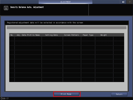 Press [Return] to return to the [Density Balance Auto. Adjustment] screen.