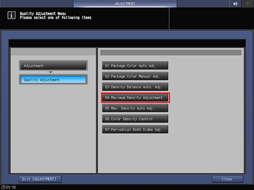 Press [Quality Adjustment] and [Maximum Density Adjustment] in sequence.
