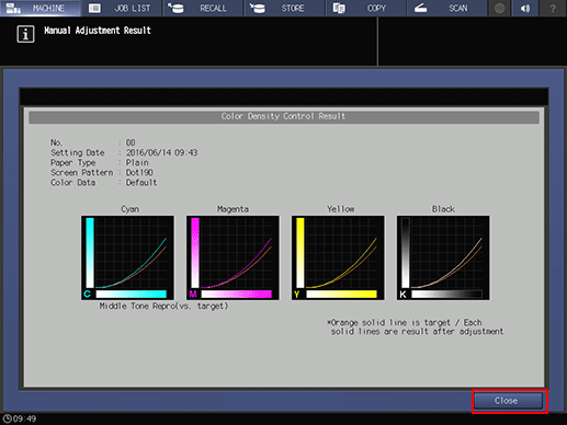 Press [Color Dens. Result] on the [MACHINE] screen.