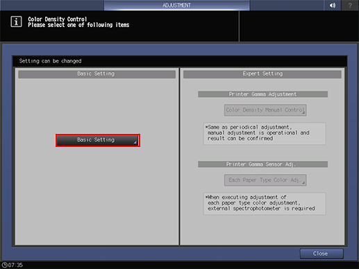 If you do not select periodical adjustment (automatic adjustment), you need to carry out Color Density Control manually.