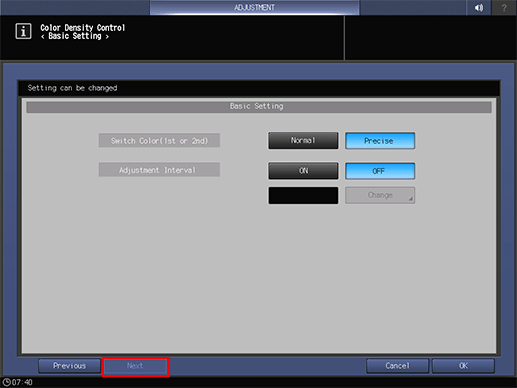 Press [OK] on the [Change Adjustment Interval] screen to return to the [Basic Setting] screen.