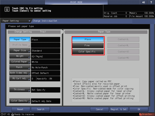 Press [OK] on the [Change IndividualSet] screen to return to the [Paper Setting] screen.