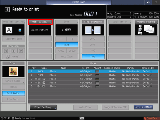 2. Press [Quality Adjustment] and [Color Density Control] in sequence.