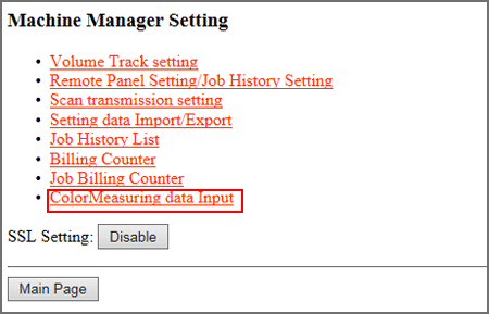 To register colorimetric data in the machine via Web, configure a setting to access to Web Utilities from the computer connected to the machine via the network.