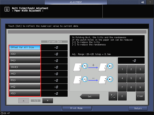 If a numeric value is specified for [Offset for All Size], it is applied to all paper sizes. With a specific paper size selected, the set value becomes the sum of the entered value and the value previously specified for [Offset for All Size].