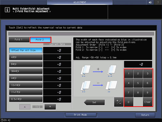 Select [Fold 2], and then use the touch panel keypad to enter the set value.