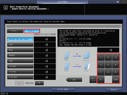 10. Select [Fold 2], and then use the touch panel keypad to enter the set value.
