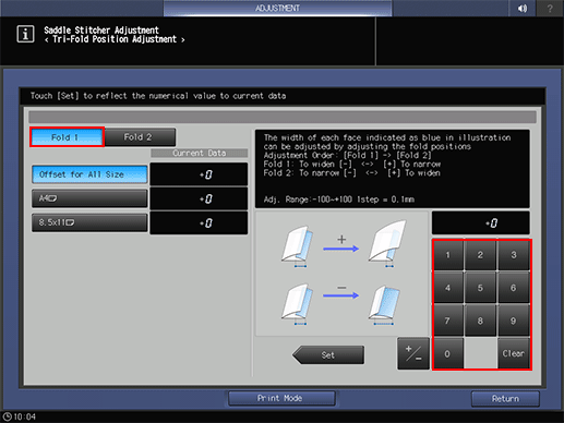 Select [Fold 1], and then use the touch panel keypad to enter the set value.