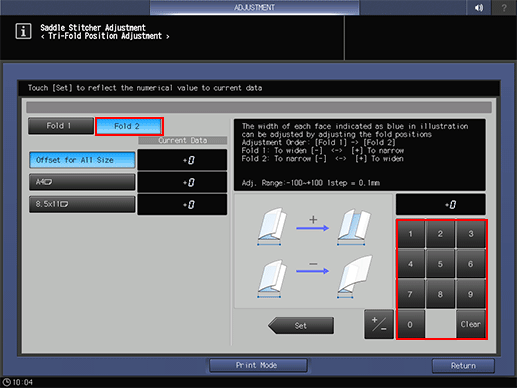 Select [Fold 2], and then use the touch panel keypad to enter the set value.