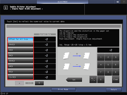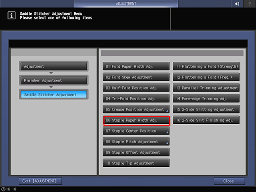 The screen returns to the [Saddle Stitcher Adjustment Menu] screen.