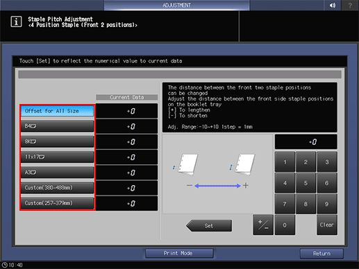 The screen returns to the [Staple Pitch Adjustment Menu] screen.