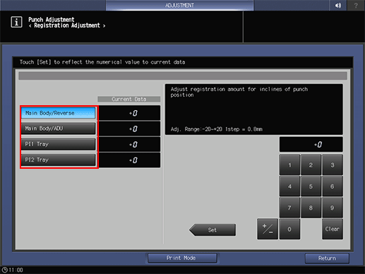2. Press [Finisher Adjustment], [Punch Adjustment], and [Registration Adjustment] in sequence.