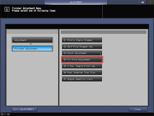 2. Press [Finisher Adjustment] and [Tri-Fold Adjustment] in sequence.