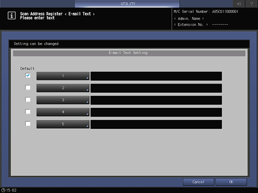 Also, specify the subject and text of E-mail. Sending E-mail is made easy by registering frequently-used subjects and messages.