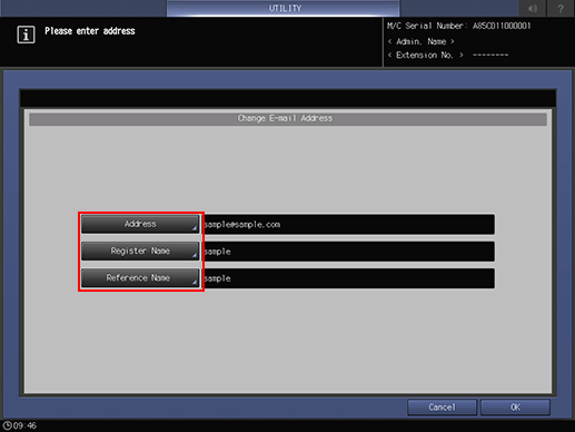 Follow the procedure on Scan Address Register to display the [Scan Address Register Menu] screen.