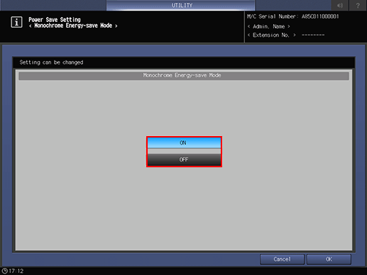 To cancel the change, press [Cancel]. In either case, the screen returns to the [Power Save Setting Menu] screen.