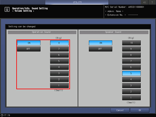 3. Set the key operation sound using the buttons under [Operation Sound].