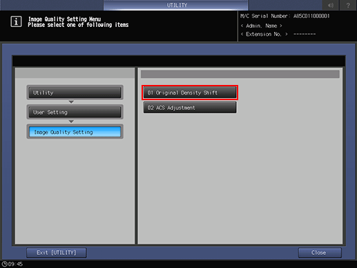 Press [Image Quality Setting] on the [User Setting Menu] screen, and then press [Original Density Shift].