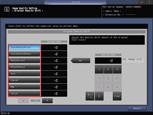 Objects of Adjustment: Text/Photo (printing), Text/Photo (photographic paper), Photo (printing), Photo (photographic paper), Text, Copied Original, Map, Ink-jet