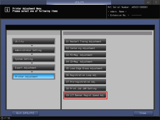 5. Press [Exit PrintMode] to return to the [LCT Banner Paper Regist. Speed Adj.] screen.