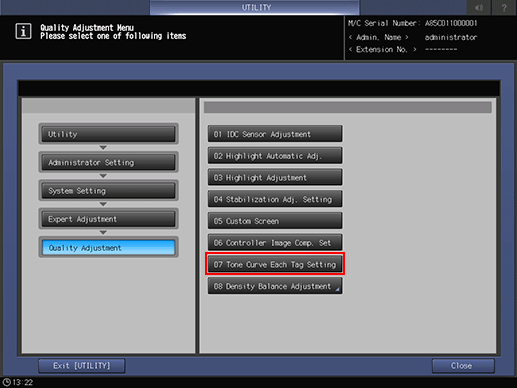 Press [System Setting] on the [Administrator Setting Menu] screen, and then press [Expert Adjustment], [Quality Adjustment], and [Tone Curve Each Tag Setting] in sequence.