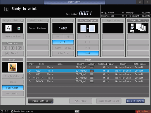 17. Press [Exit PrintMode] to return to the [Density Balance Adj. Data Register] screen.