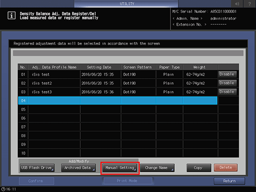 3. Select any one row in the list, and press [Manual Setting].