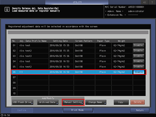 Press [Exit PrintMode] to return to the [Density Balance Adj. Data Register] screen.