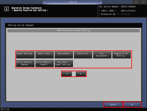 Home Settings and AdjustmentsMachine Function Key Setting: Changing the Locations of Function Keys on the MACHINE Screen