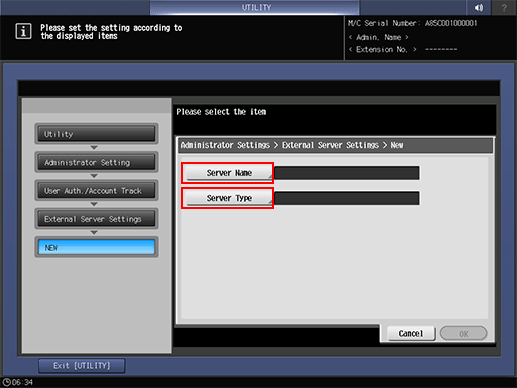 Press [Server Name] to display the [Server Name] screen and enter a name for the server.