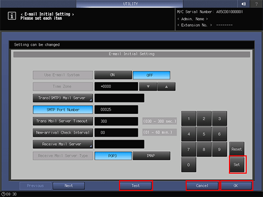 Pressing [Test] will display the confirmation dialog. Press [Yes] to check that the setting has been made properly.